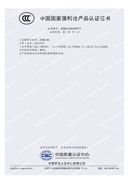 礦用隔爆兼本安型風門控制用電控裝置主機3C證書